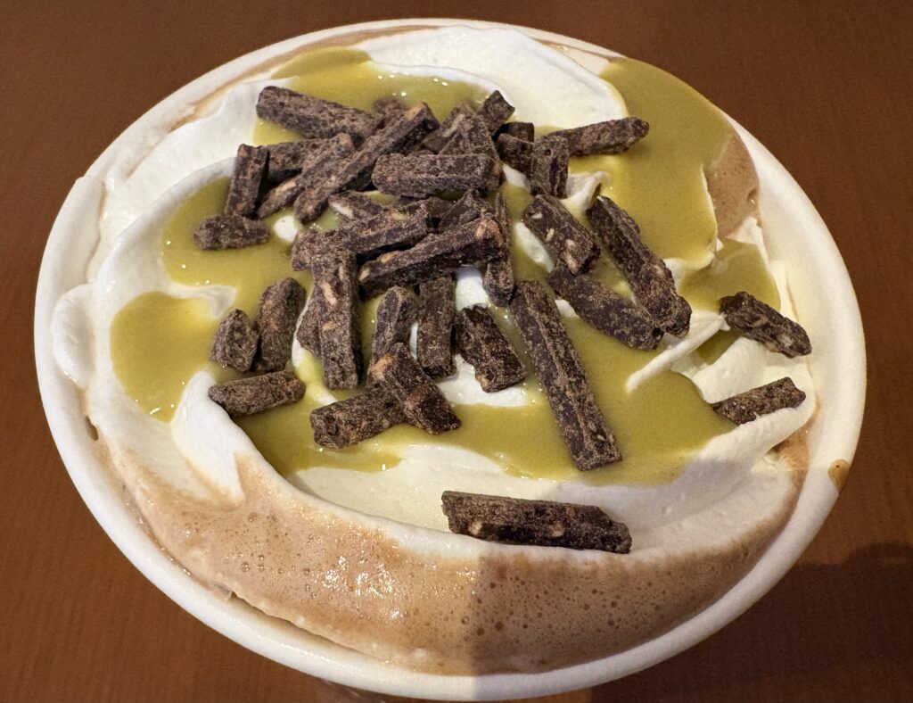 今年の新作ドリンクは、世界中で話題となっている「ドバイチョコレート」をイメージしたドリンク。