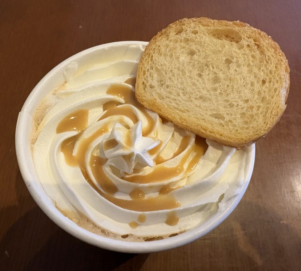 途中からホイップ部分とドリンクを混ぜて飲みましたが、甘さをほとんど感じなかったので、甘いドリンクが苦手な方でも最後まで美味しく頂けると思います。